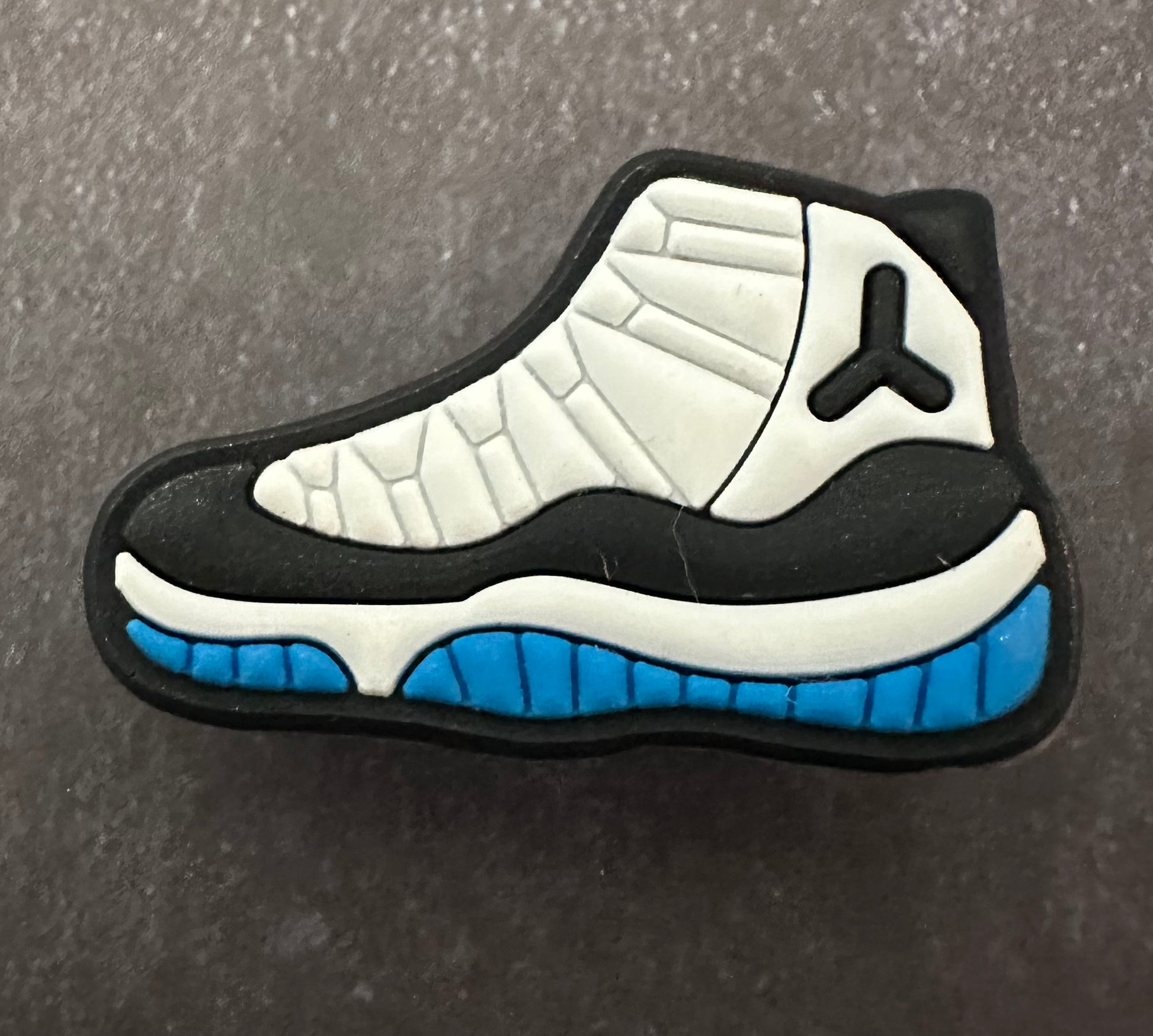 Basketball shoe white, black, blue shoe charm