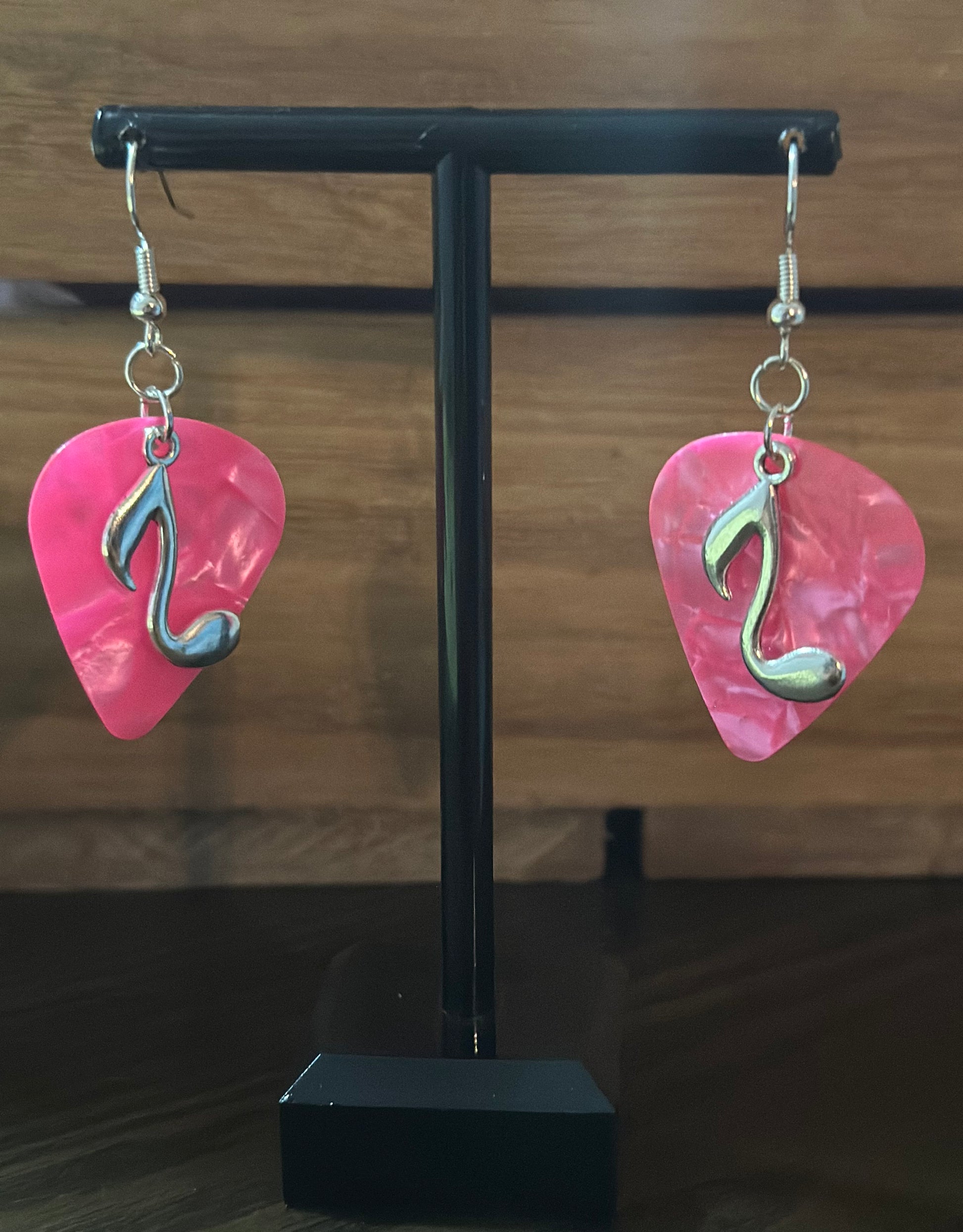 Pink Guitar Pick Earrings