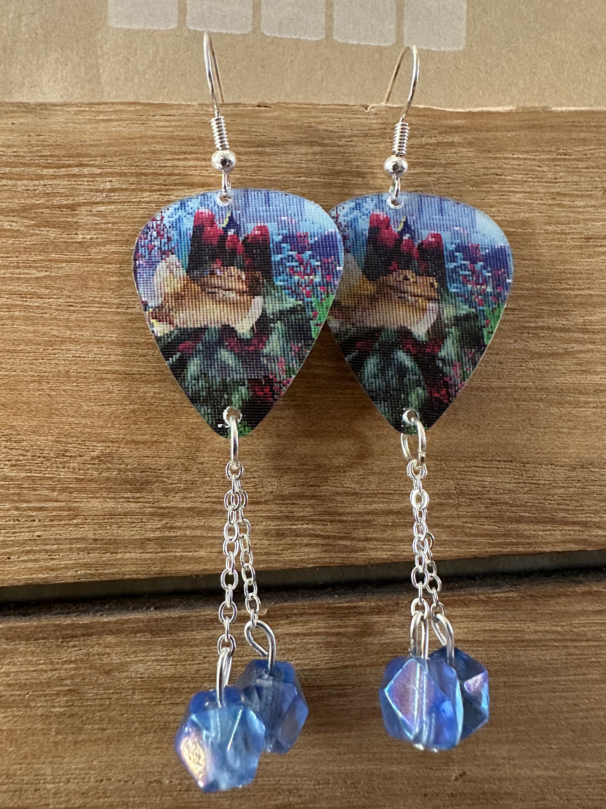 Real guitar picks repurposed for earrings